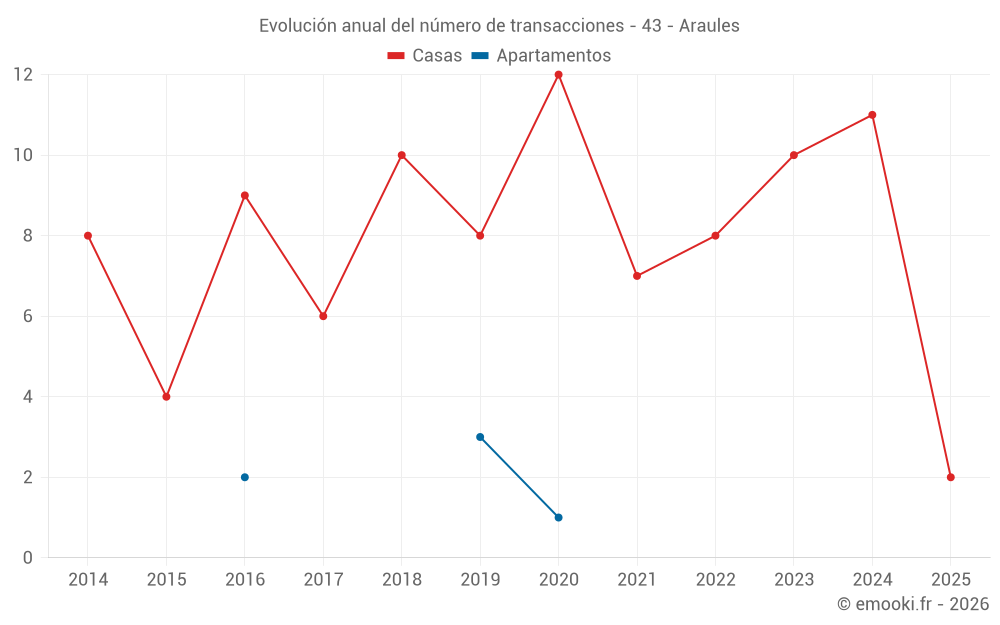 El precio mediano en las 17 transacciones de casas de los últimos 24 meses en la comuna de Araules fue de 1 810 € por metro cuadrado para un valor patrimonial medio de 180 000 €. Durante este período el 60% de las transacciones estuvieron entre 1 176 y 2 337 € por metro cuadrado (del 2º al 8º decil).