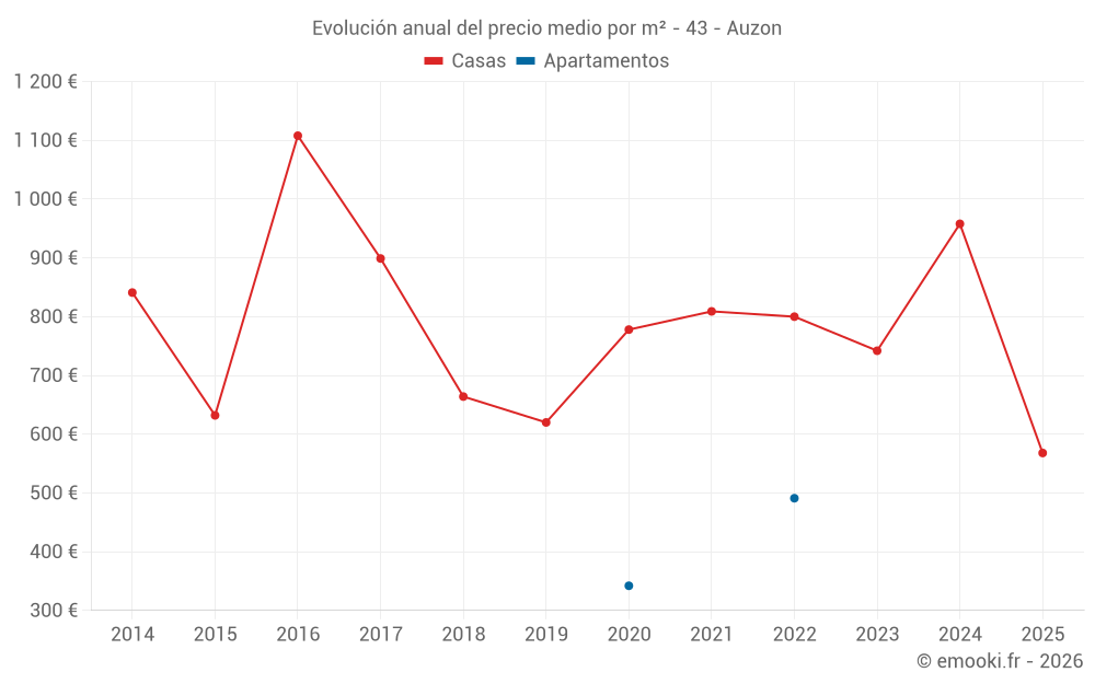 ¿Cuál es el precio por m2 de las casas en Auzon?