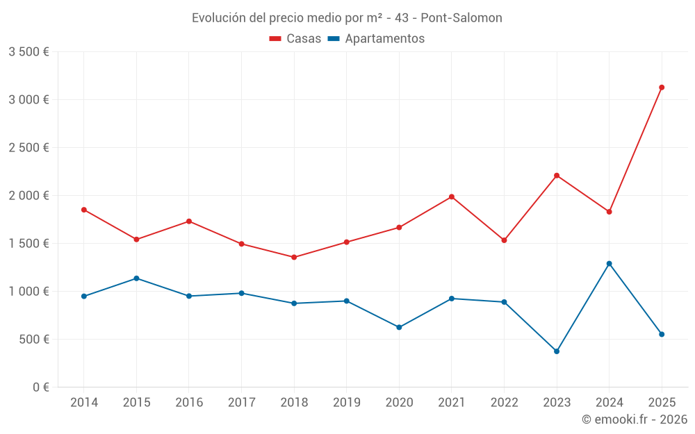 Mapa de precios de la vivienda en la comuna de Pont-Salomon, elija una sección para ver las transacciones por parcela.
