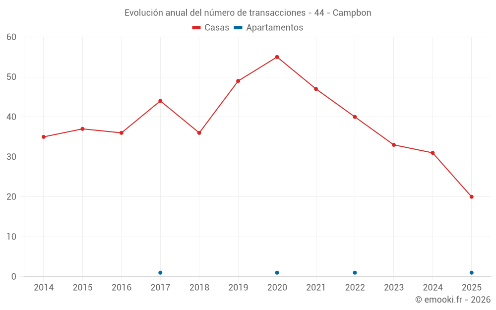 El precio mediano en las 20 transacciones de casas de los últimos 6 meses en la comuna de Campbon fue de 2 377 € por metro cuadrado para un valor patrimonial medio de 265 000 €. Durante este período el 60% de las transacciones estuvieron entre 1 869 y 2 919 € por metro cuadrado (del 2º al 8º decil).