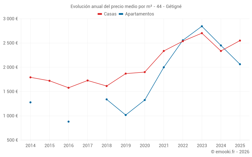 ¿Cuál es el precio por m2 de las casas en Gétigné?