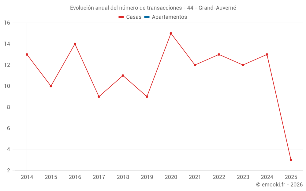 El precio mediano en las 21 transacciones de casas de los últimos 24 meses en la comuna de Grand-Auverné fue de 1 318 € por metro cuadrado para un valor patrimonial medio de 110 000 €. Durante este período el 60% de las transacciones estuvieron entre 851 y 1 855 € por metro cuadrado (del 2º al 8º decil).