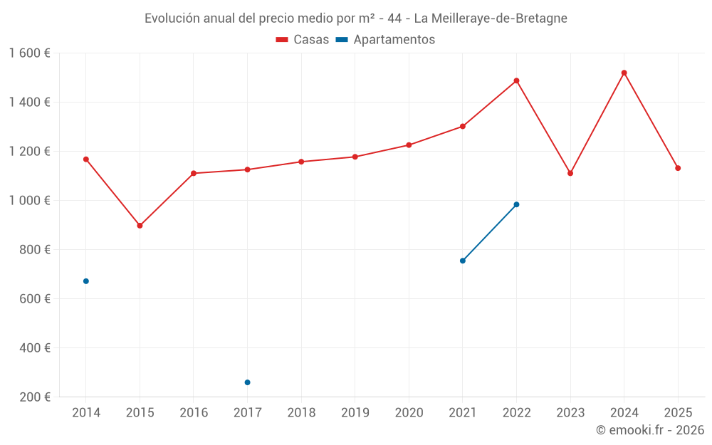¿Cuál es el precio por m2 de las casas en La Meilleraye-de-Bretagne?