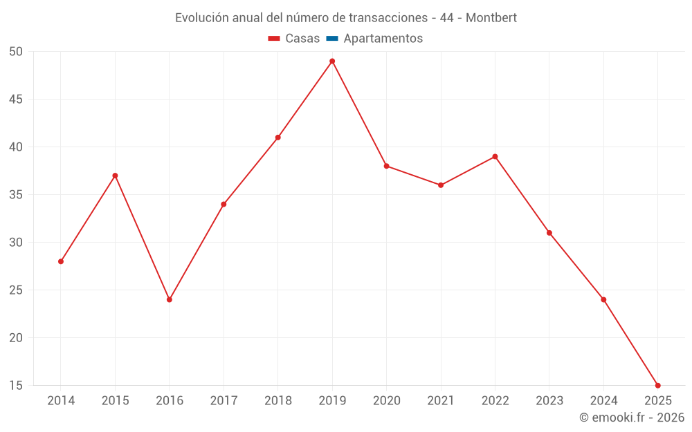 El precio mediano en las 30 transacciones de casas de los últimos 12 meses en la comuna de Montbert fue de 2 425 € por metro cuadrado para un valor patrimonial medio de 224 000 €. Durante este período el 60% de las transacciones estuvieron entre 1 682 y 2 959 € por metro cuadrado (del 2º al 8º decil).