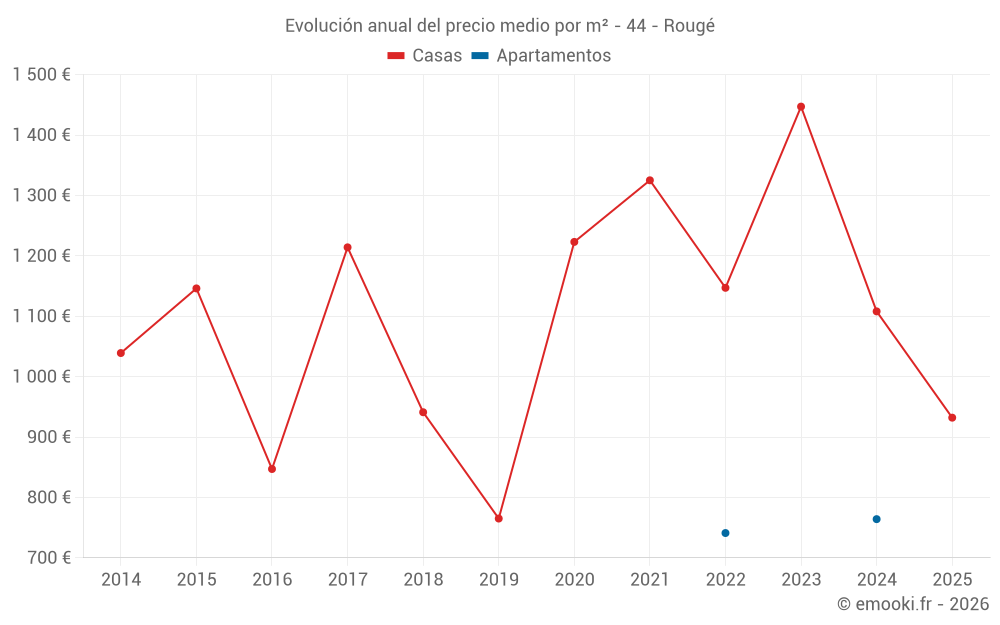 ¿Cuál es el precio por m2 de las casas en Rougé?