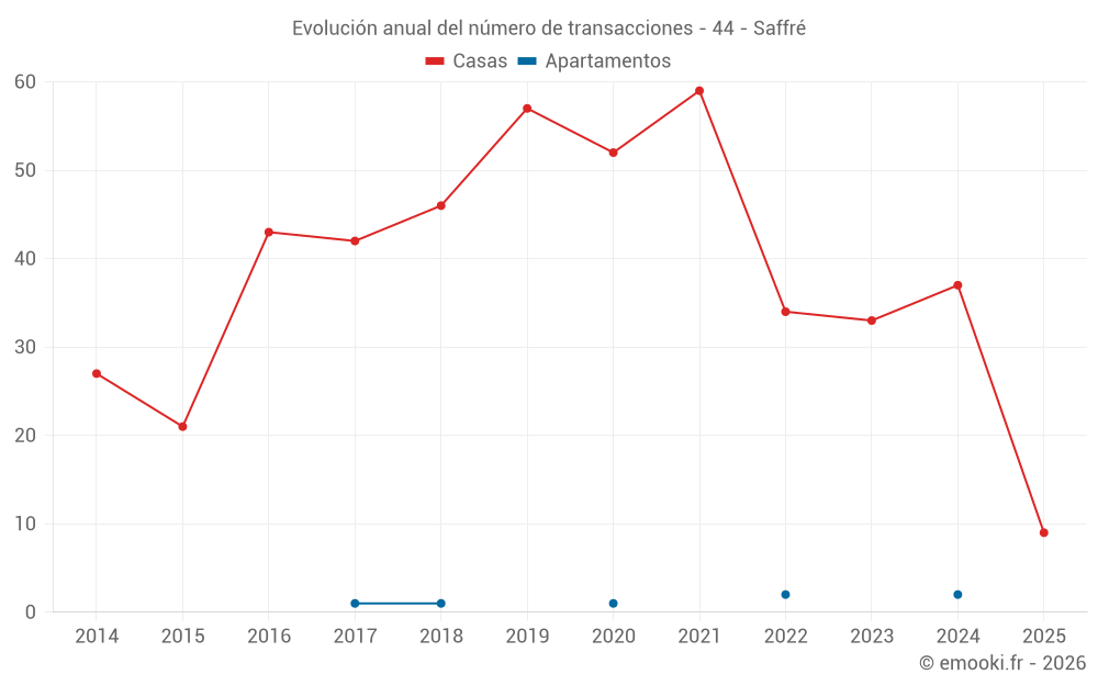 El precio mediano en las 33 transacciones de casas de los últimos 12 meses en la comuna de Saffré fue de 2 143 € por metro cuadrado para un valor patrimonial medio de 200 000 €. Durante este período el 60% de las transacciones estuvieron entre 1 449 y 2 548 € por metro cuadrado (del 2º al 8º decil).