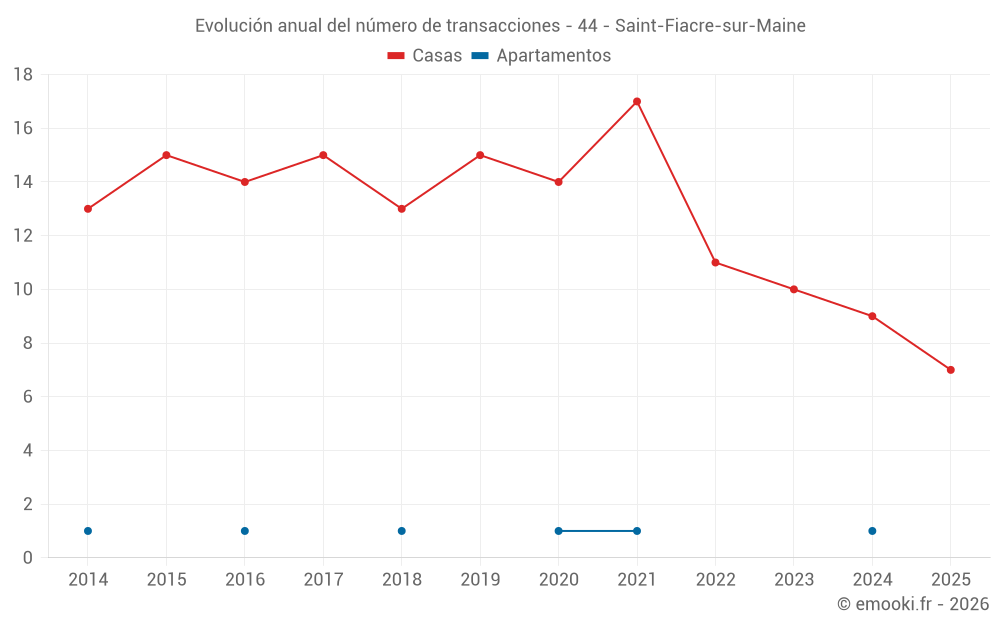 El precio mediano en las 22 transacciones de casas de los últimos 24 meses en la comuna de Saint-Fiacre-sur-Maine fue de 2 760 € por metro cuadrado para un valor patrimonial medio de 318 000 €. Durante este período el 60% de las transacciones estuvieron entre 1 831 y 3 051 € por metro cuadrado (del 2º al 8º decil).