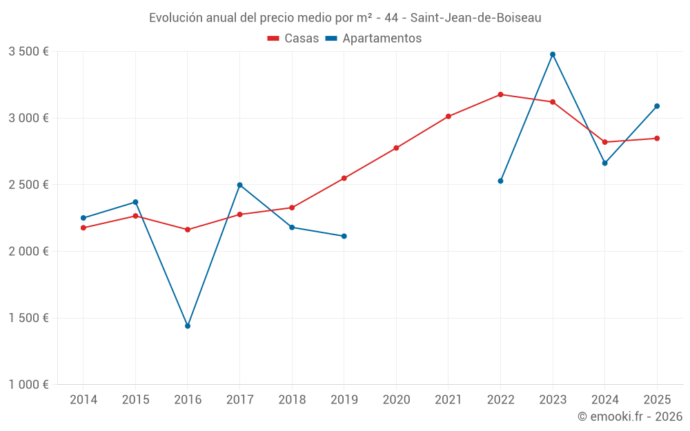 ¿Cuál es el precio por m2 de las casas en Saint-Jean-de-Boiseau?