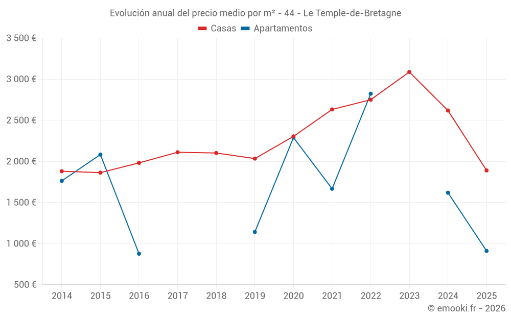 Precio por m² en Le Temple-de-Bretagne