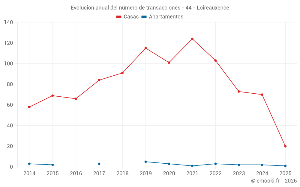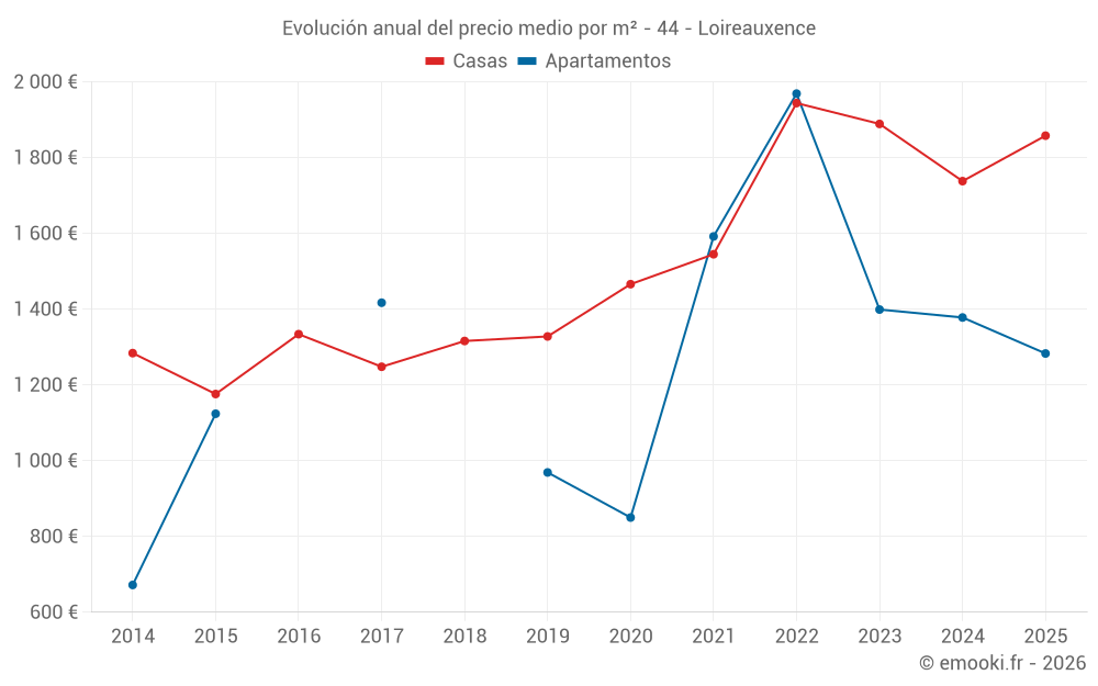 El precio mediano en las 20 transacciones de casas de los últimos 6 meses en la comuna de Loireauxence fue de 1 858 € por metro cuadrado para un valor patrimonial medio de 160 500 €. Durante este período el 60% de las transacciones estuvieron entre 1 207 y 2 168 € por metro cuadrado (del 2º al 8º decil).