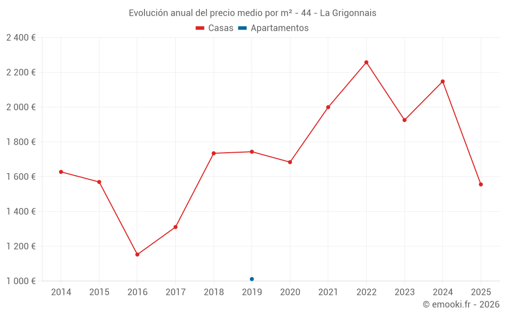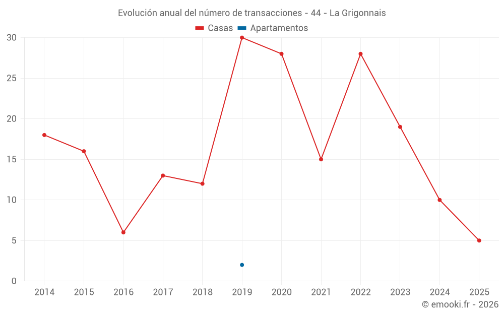 El precio mediano en las 26 transacciones de casas de los últimos 24 meses en la comuna de La Grigonnais fue de 2 033 € por metro cuadrado para un valor patrimonial medio de 188 200 €. Durante este período el 60% de las transacciones estuvieron entre 1 500 y 2 354 € por metro cuadrado (del 2º al 8º decil).