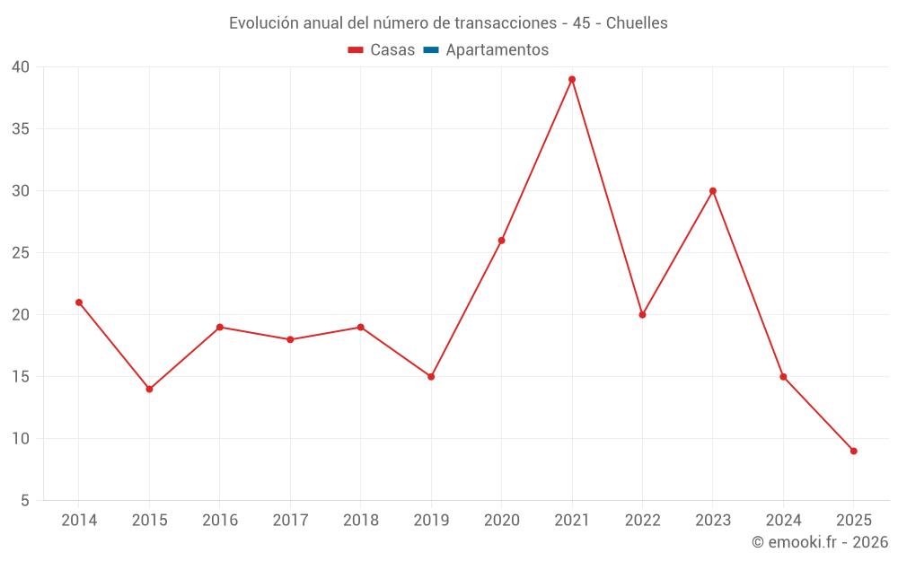 El precio mediano en las 17 transacciones de casas de los últimos 12 meses en la comuna de Chuelles fue de 1 250 € por metro cuadrado para un valor patrimonial medio de 160 000 €. Durante este período el 60% de las transacciones estuvieron entre 974 y 1 698 € por metro cuadrado (del 2º al 8º decil).