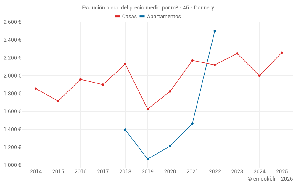 ¿Cuál es el precio por m2 de las casas en Donnery?