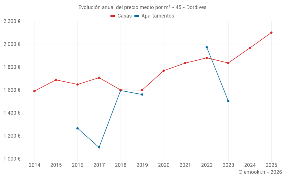 ¿Cuál es el precio por m2 de las casas en Dordives?