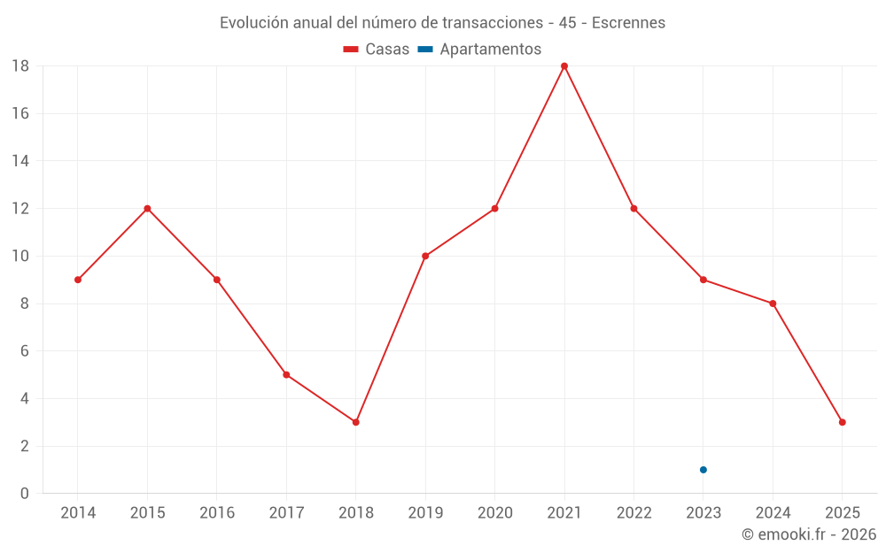 El precio mediano en las 17 transacciones de casas de los últimos 24 meses en la comuna de Escrennes fue de 1 603 € por metro cuadrado para un valor patrimonial medio de 145 900 €. Durante este período el 60% de las transacciones estuvieron entre 1 243 y 1 868 € por metro cuadrado (del 2º al 8º decil).