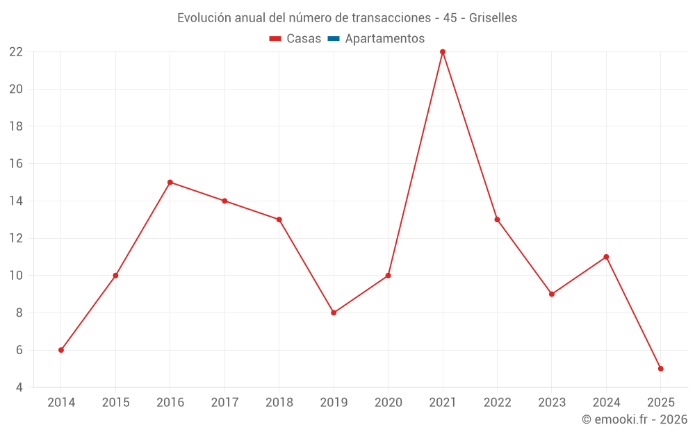 El precio mediano en las 20 transacciones de casas de los últimos 24 meses en la comuna de Griselles fue de 1 762 € por metro cuadrado para un valor patrimonial medio de 155 500 €. Durante este período el 60% de las transacciones estuvieron entre 1 300 y 2 068 € por metro cuadrado (del 2º al 8º decil).