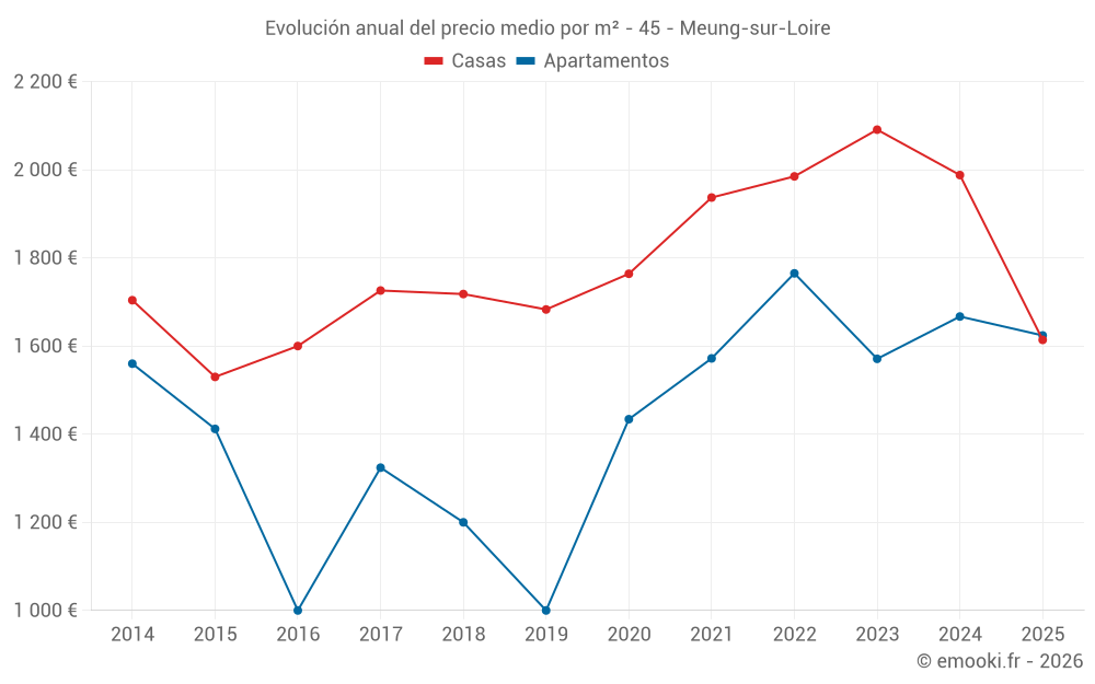 ¿Cuál es el precio por m2 de las casas en Meung-sur-Loire?