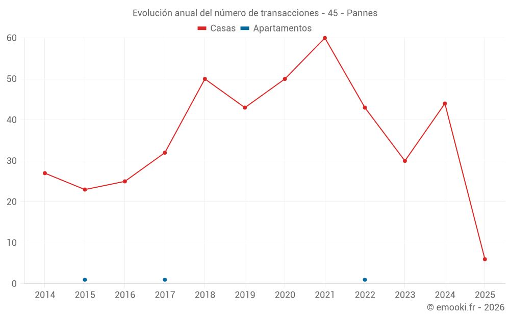 El precio mediano en las 25 transacciones de casas de los últimos 12 meses en la comuna de Pannes fue de 1 596 € por metro cuadrado para un valor patrimonial medio de 152 113 €. Durante este período el 60% de las transacciones estuvieron entre 1 289 y 1 976 € por metro cuadrado (del 2º al 8º decil).