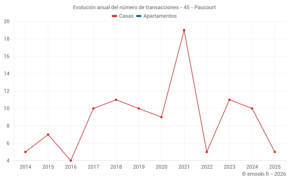El precio mediano en las 21 transacciones de casas de los últimos 24 meses en la comuna de Paucourt fue de 1 713 € por metro cuadrado para un valor patrimonial medio de 191 000 €. Durante este período el 60% de las transacciones estuvieron entre 1 475 y 1 958 € por metro cuadrado (del 2º al 8º decil).