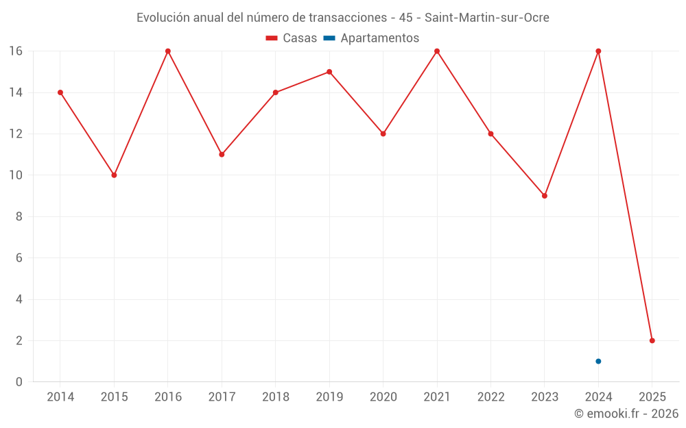 El precio mediano en las 24 transacciones de casas de los últimos 24 meses en la comuna de Saint-Martin-sur-Ocre fue de 1 357 € por metro cuadrado para un valor patrimonial medio de 138 500 €. Durante este período el 60% de las transacciones estuvieron entre 960 y 1 814 € por metro cuadrado (del 2º al 8º decil).