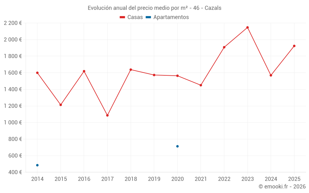 ¿Cuál es el precio por m2 de las casas en Cazals?