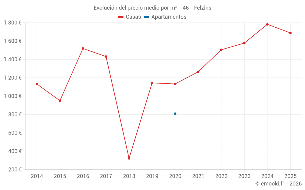 Mapa de precios de la vivienda en la comuna de Felzins, elija una sección para ver las transacciones por parcela.