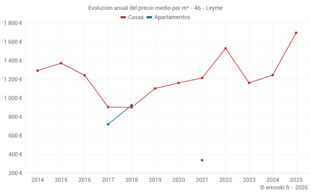 ¿Cuál es el precio por m2 de las casas en Leyme?
