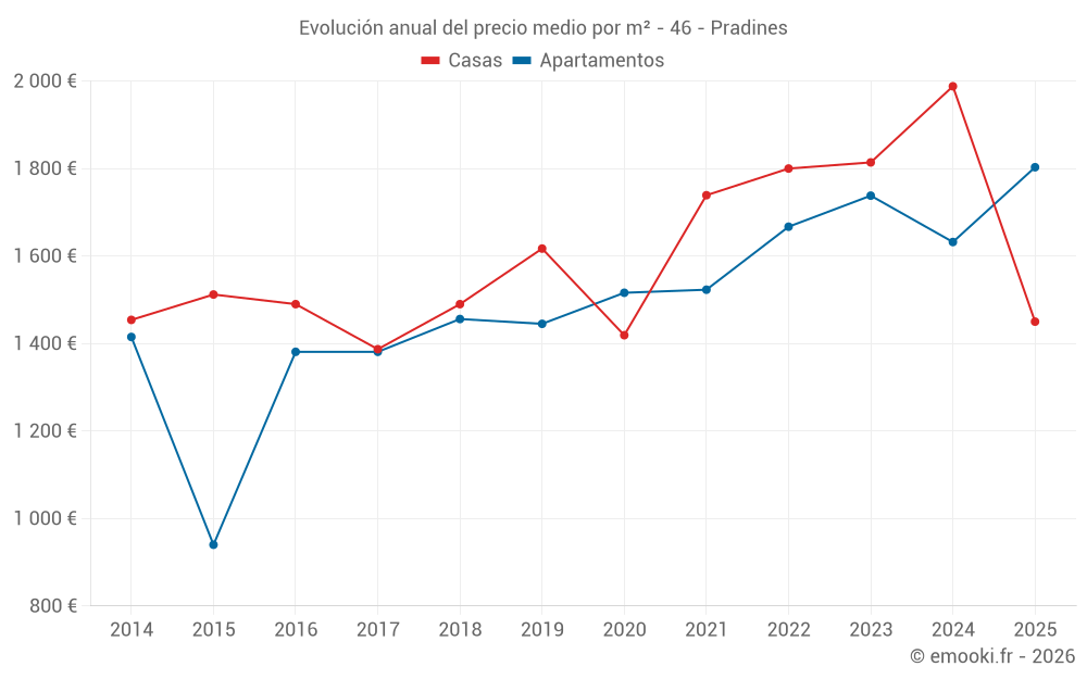 Evolución del precio medio por m² de las casas