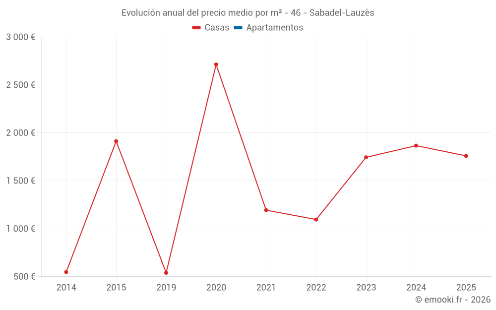 Evolución del precio medio por m² de las casas