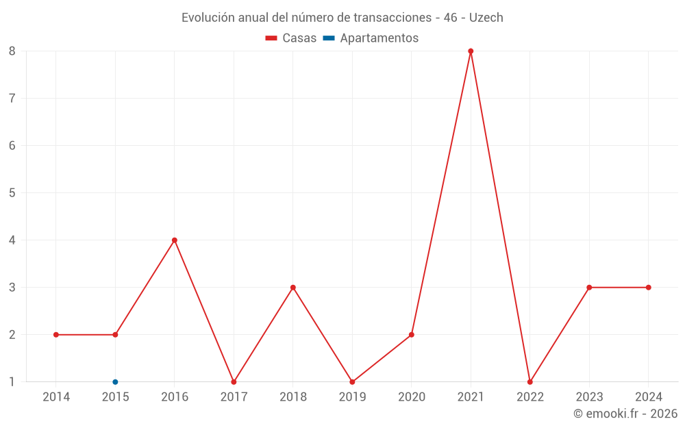 Mapa de precios de la vivienda en la comuna de Uzech, elija una sección para ver las transacciones por parcela.