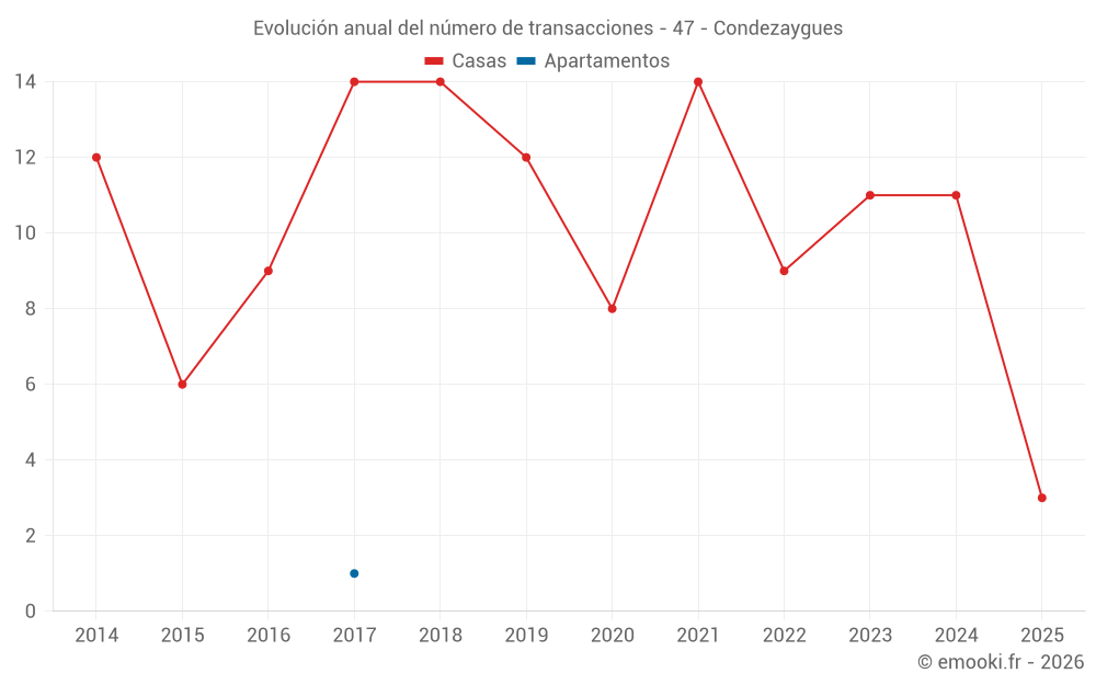 El precio mediano en las 18 transacciones de casas de los últimos 24 meses en la comuna de Condezaygues fue de 1 394 € por metro cuadrado para un valor patrimonial medio de 162 500 €. Durante este período el 60% de las transacciones estuvieron entre 1 065 y 1 755 € por metro cuadrado (del 2º al 8º decil).