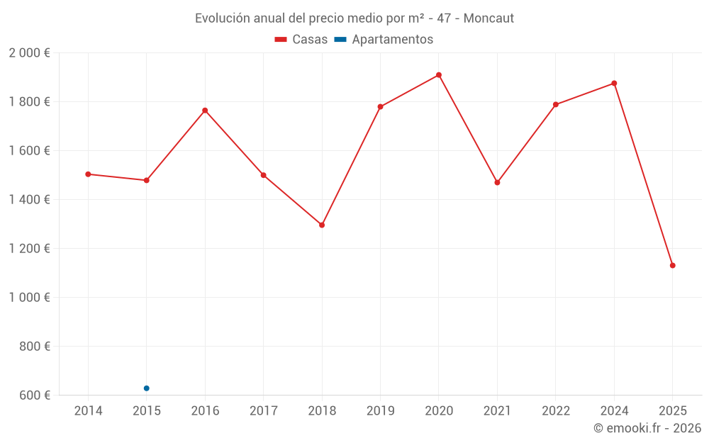 Mapa de precios de la vivienda en la comuna de Moncaut, elija una sección para ver las transacciones por parcela.