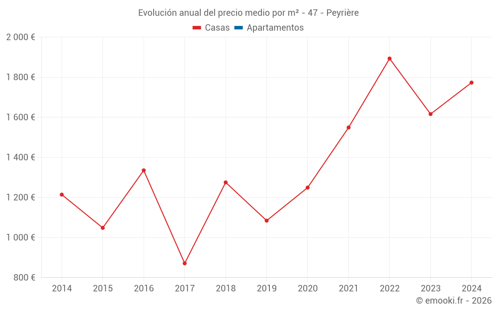Evolución del precio medio por m² de las casas