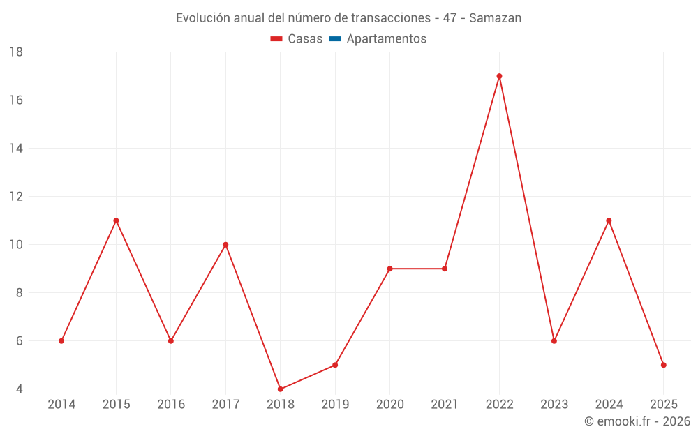 El precio mediano en las 20 transacciones de casas de los últimos 24 meses en la comuna de Samazan fue de 1 424 € por metro cuadrado para un valor patrimonial medio de 178 000 €. Durante este período el 60% de las transacciones estuvieron entre 821 y 2 002 € por metro cuadrado (del 2º al 8º decil).