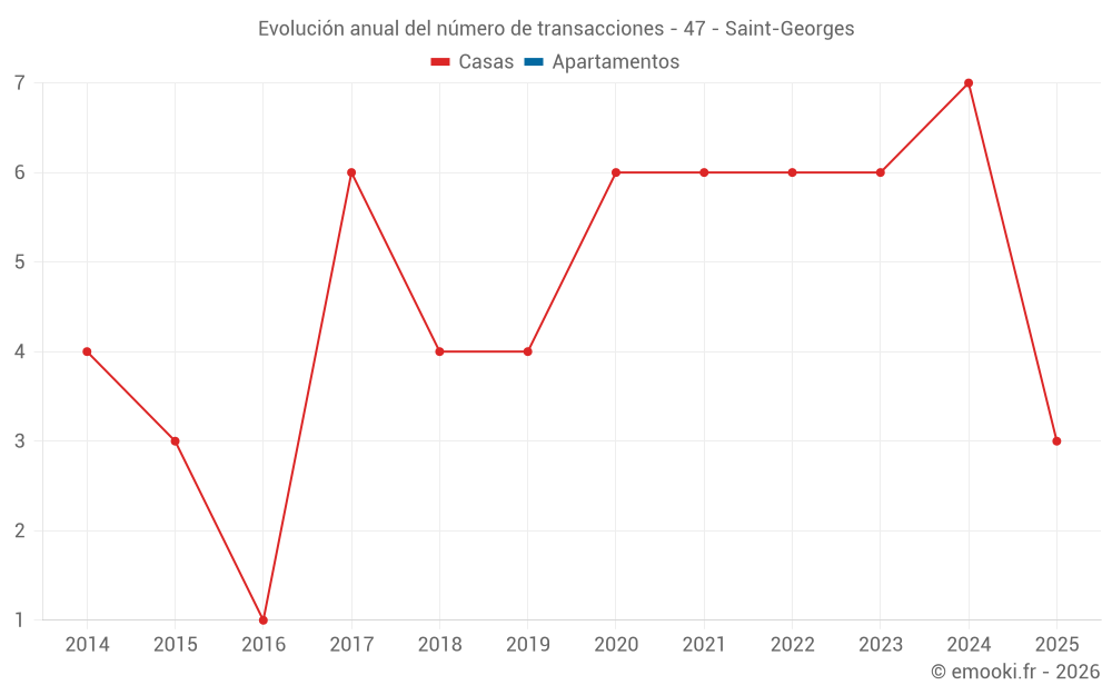 El precio mediano en las 14 transacciones de casas de los últimos 24 meses en la comuna de Saint-Georges fue de 1 580 € por metro cuadrado para un valor patrimonial medio de 167 500 €. Durante este período el 60% de las transacciones estuvieron entre 1 211 y 2 001 € por metro cuadrado (del 2º al 8º decil).