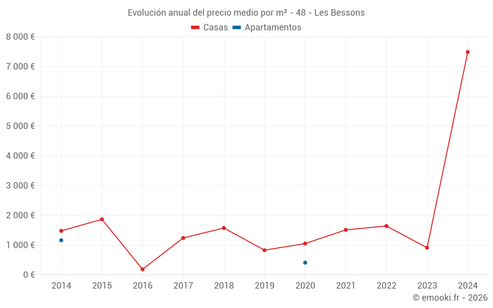 Evolución del precio medio por m² de las casas