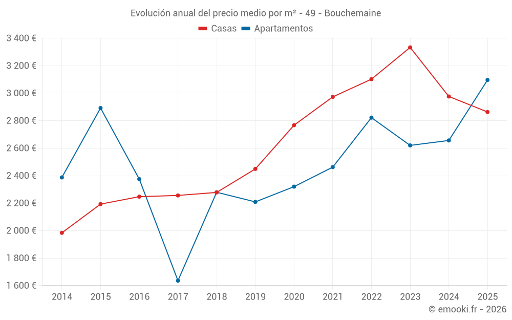 ¿Cuál es el precio por m2 de las casas en Bouchemaine?