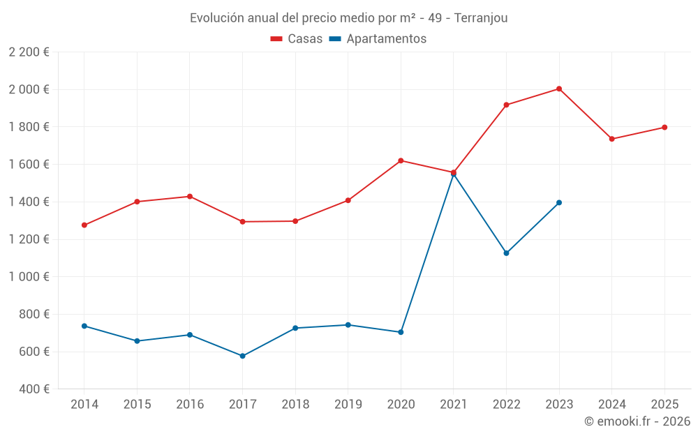 ¿Cuál es el precio por m2 de las casas en Terranjou?