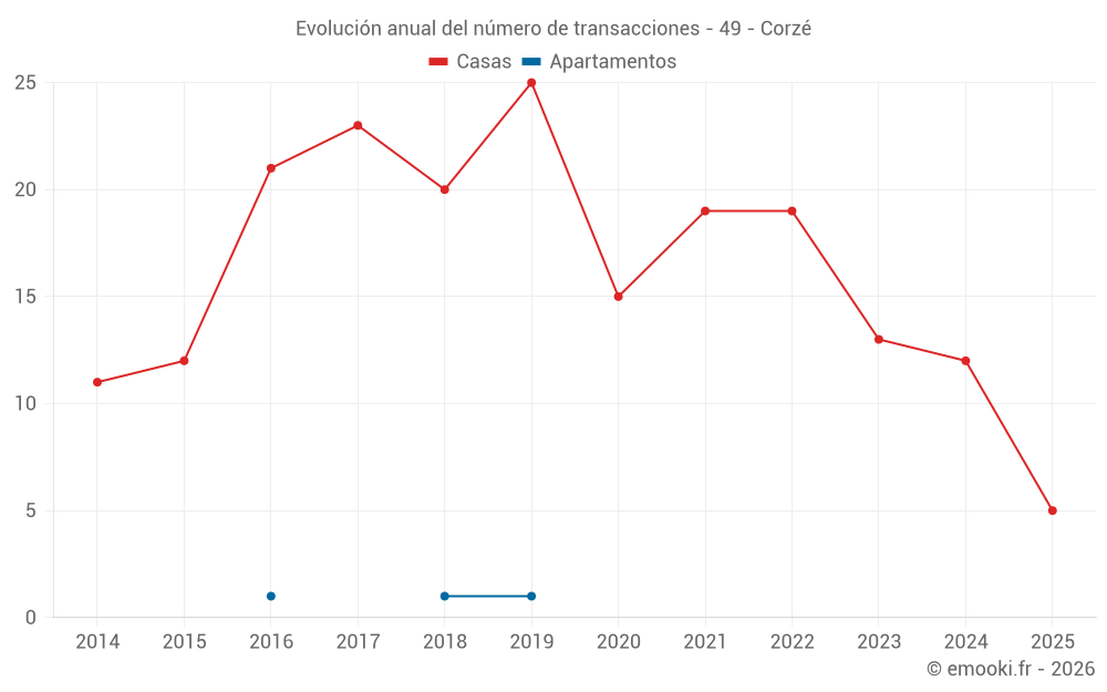El precio mediano en las 25 transacciones de casas de los últimos 24 meses en la comuna de Corzé fue de 1 838 € por metro cuadrado para un valor patrimonial medio de 175 000 €. Durante este período el 60% de las transacciones estuvieron entre 1 268 y 2 410 € por metro cuadrado (del 2º al 8º decil).