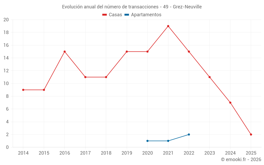 El precio mediano en las 16 transacciones de casas de los últimos 24 meses en la comuna de Grez-Neuville fue de 2 239 € por metro cuadrado para un valor patrimonial medio de 308 750 €. Durante este período el 60% de las transacciones estuvieron entre 1 609 y 2 667 € por metro cuadrado (del 2º al 8º decil).