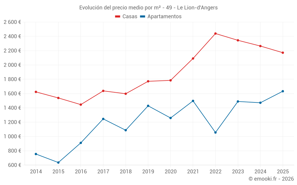 Mapa de precios de la vivienda en la comuna de Le Lion-d'Angers, elija una sección para ver las transacciones por parcela.