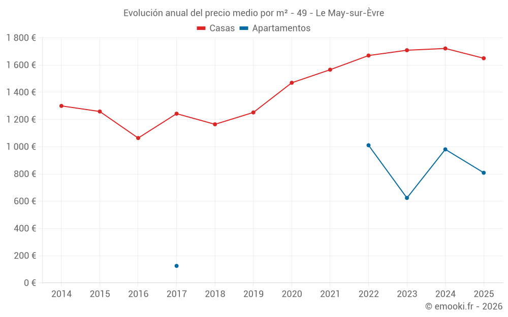 ¿Cuál es el precio por m2 de las casas en Le May-sur-Èvre?