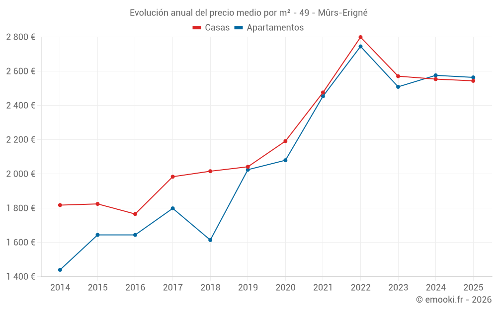¿Cuál es el precio por m2 de las casas en Mûrs-Erigné?