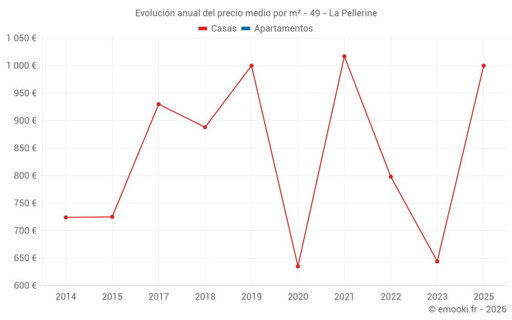 Evolución del precio medio por m² de las casas