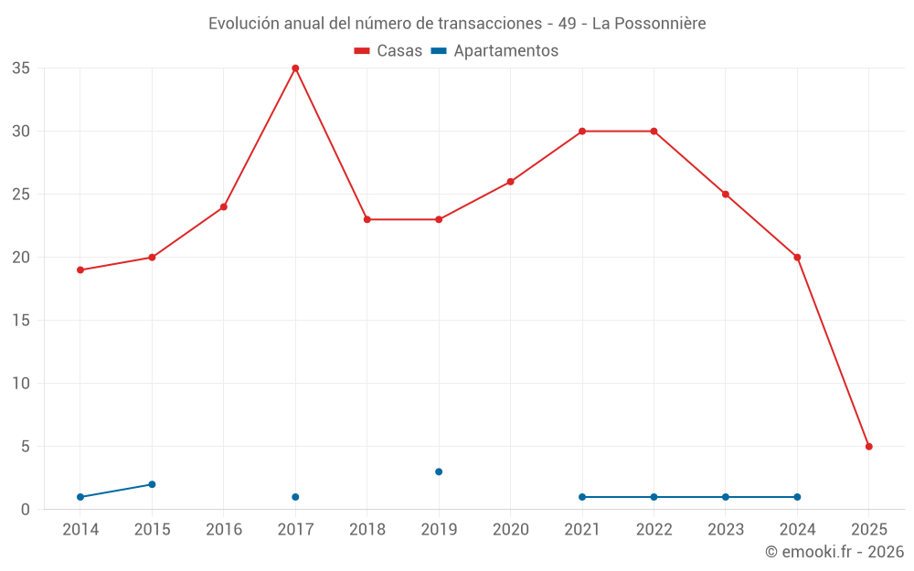 El precio mediano en las 36 transacciones de casas de los últimos 24 meses en la comuna de La Possonnière fue de 2 240 € por metro cuadrado para un valor patrimonial medio de 257 500 €. Durante este período el 60% de las transacciones estuvieron entre 1 864 y 3 086 € por metro cuadrado (del 2º al 8º decil).