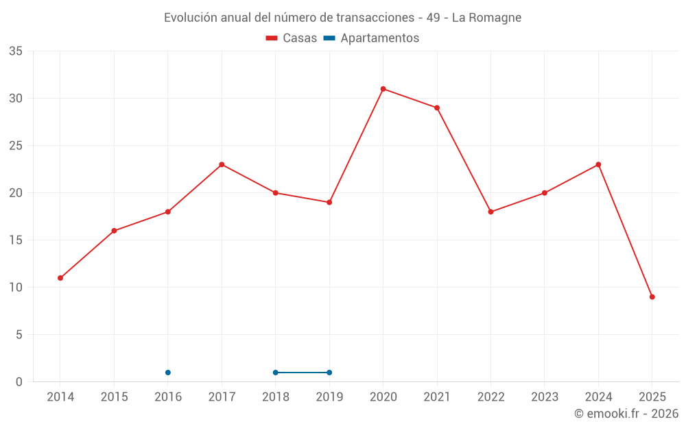 El precio mediano en las 38 transacciones de casas de los últimos 24 meses en la comuna de La Romagne fue de 1 858 € por metro cuadrado para un valor patrimonial medio de 189 500 €. Durante este período el 60% de las transacciones estuvieron entre 1 055 y 2 246 € por metro cuadrado (del 2º al 8º decil).