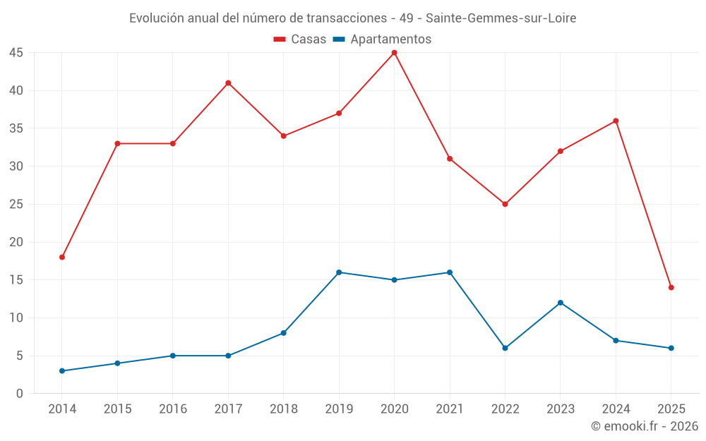 El precio mediano en las 33 transacciones de casas de los últimos 12 meses en la comuna de Sainte-Gemmes-sur-Loire fue de 2 934 € por metro cuadrado para un valor patrimonial medio de 300 000 €. Durante este período el 60% de las transacciones estuvieron entre 2 392 y 3 776 € por metro cuadrado (del 2º al 8º decil).