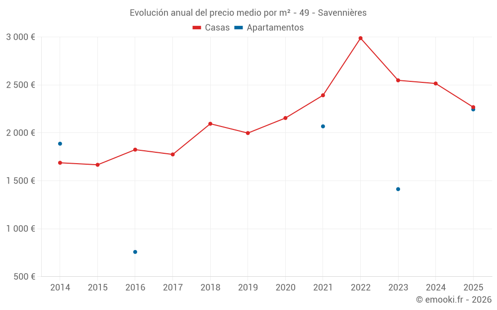 ¿Cuál es el precio por m2 de las casas en Savennières?