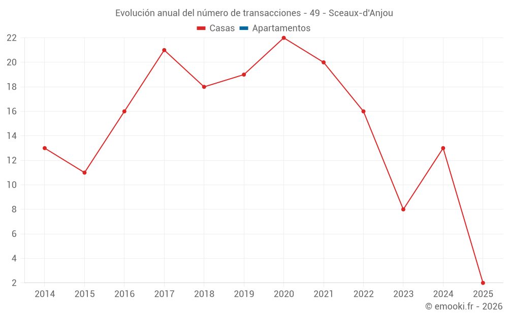 El precio mediano en las 17 transacciones de casas de los últimos 24 meses en la comuna de Sceaux-d'Anjou fue de 2 416 € por metro cuadrado para un valor patrimonial medio de 235 000 €. Durante este período el 60% de las transacciones estuvieron entre 1 818 y 2 622 € por metro cuadrado (del 2º al 8º decil).