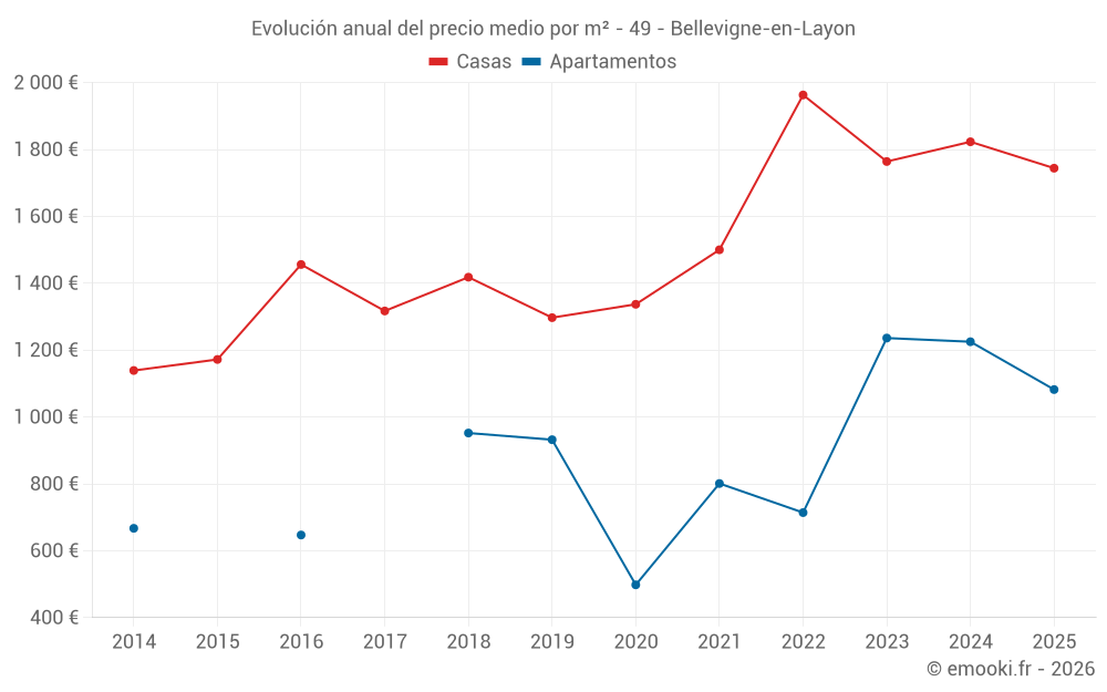 ¿Cuál es el precio por m2 de las casas en Bellevigne-en-Layon?